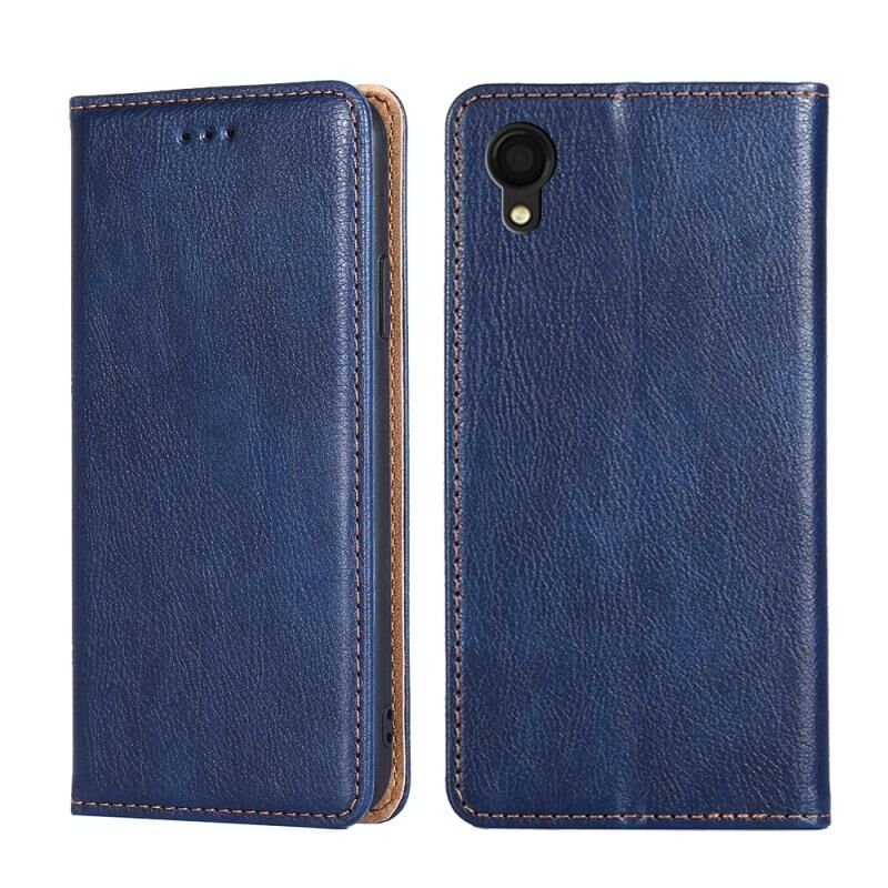 Για το Samsung Galaxy A22 5G Ιαπωνία γυαλιστερό λάδι στερεό χρώμα μαγνητικό δέρμα τηλέφωνο υπόθεση (μπλε)