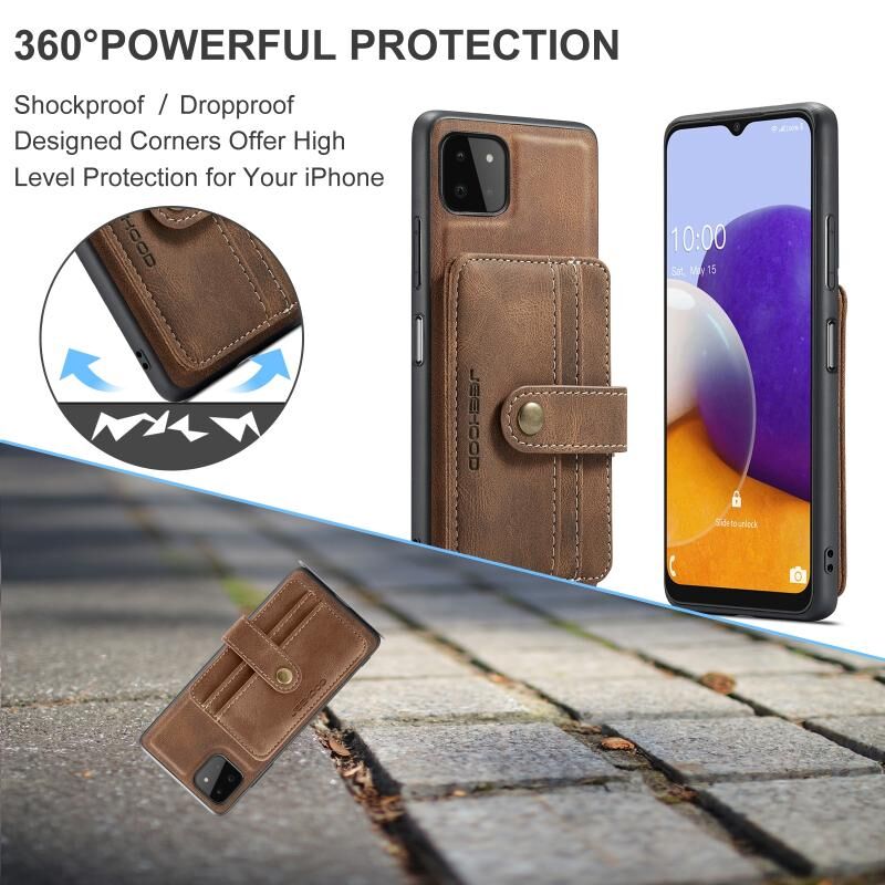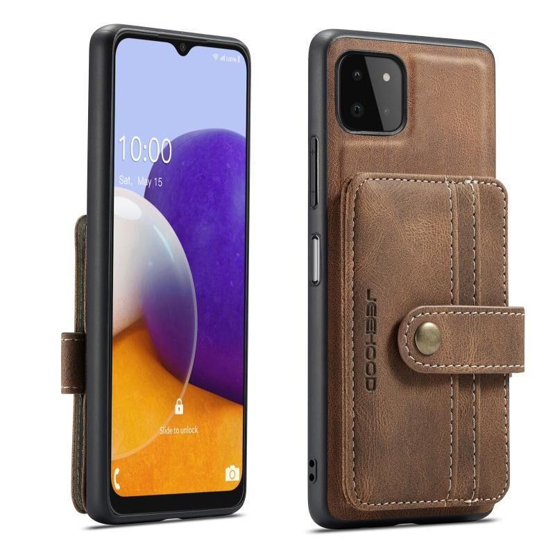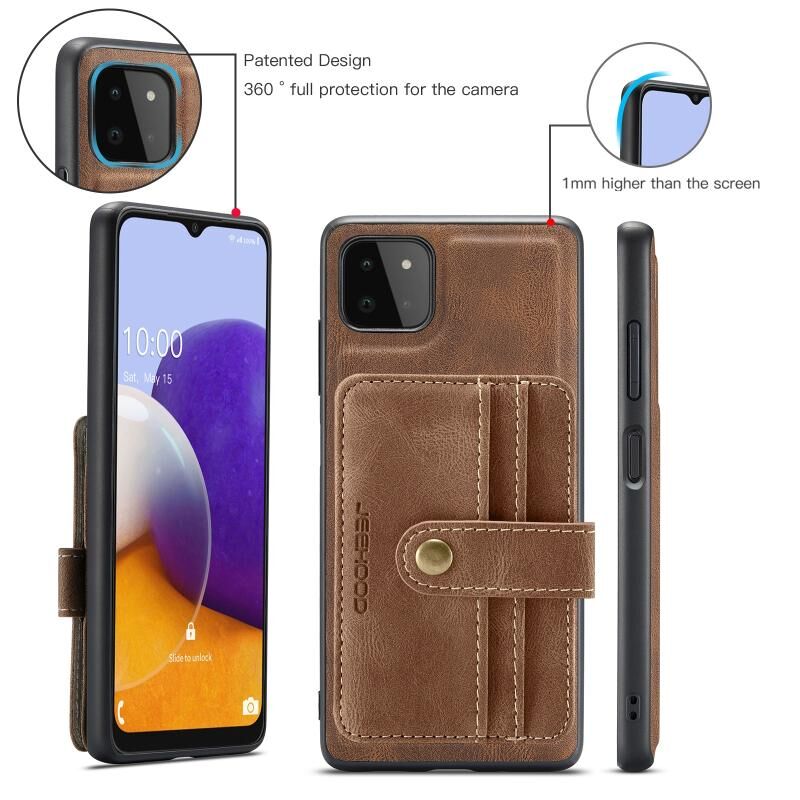 Για Samsung Galaxy A22 5G JEEHOOD Θήκη Τηλεφώνου με Αντικλεπτική Προστασία RFID, Μαγνητική από PU + TPU με Θήκη Καρτών (Καφέ) (JEEHOOD)