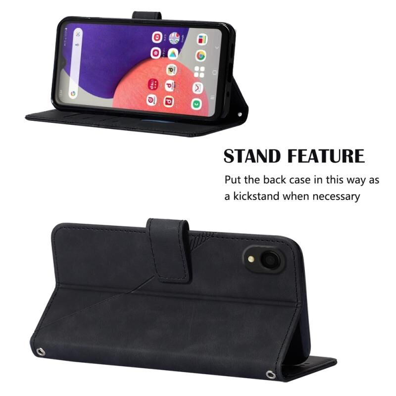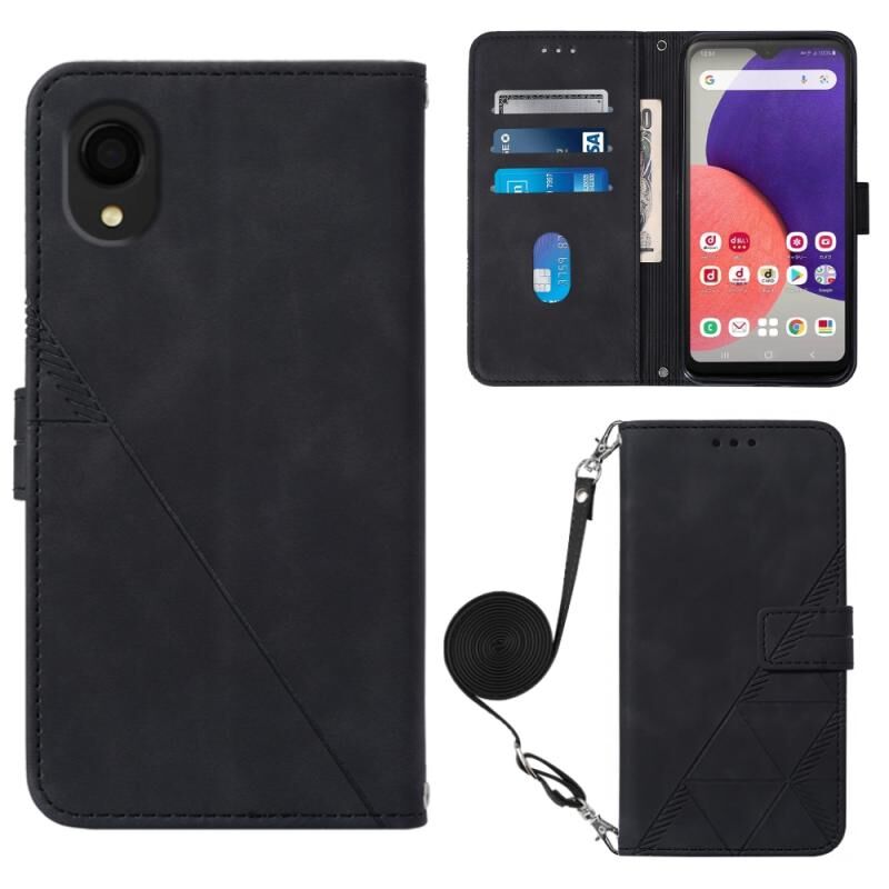 Θήκη τηλεφώνου Samsung Galaxy A22 5G JP Edition, δερμάτινη, τύπου flip με ανάγλυφο 3D, για χρήση στον ώμο (Μαύρο)