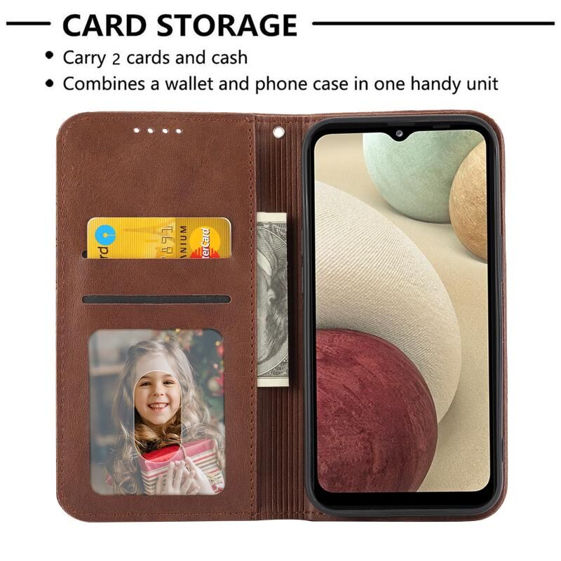 Για Samsung Galaxy A22 5G JP έκδοση JP κυβικό πλέγμα μοσχάρι υφή μαγνητικό κλείσιμο δερμάτινη θήκη τηλεφώνου (καφέ)