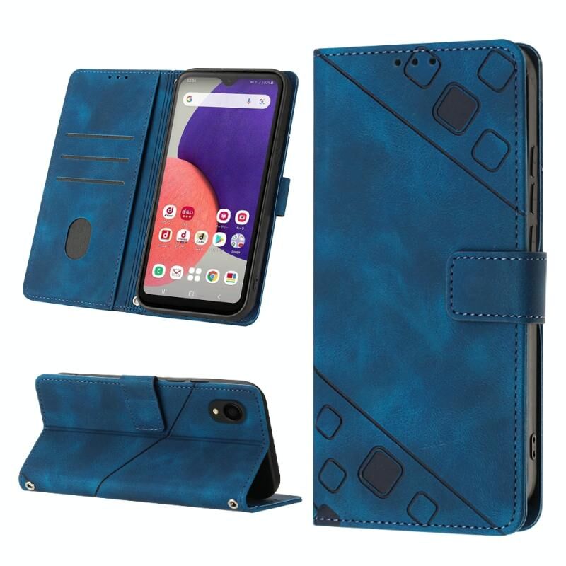 Για το Samsung Galaxy A22 5G JP έκδοση Skin-feel ανάγλυφη δερμάτινη θήκη τηλεφώνου (Μπλε)