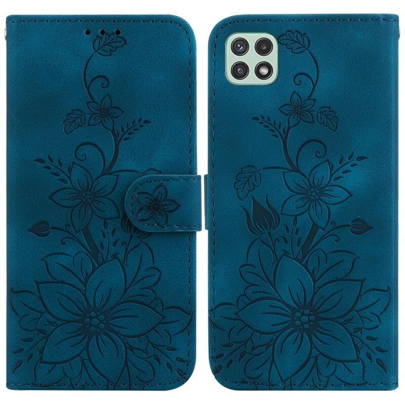 Θήκη τηλεφώνου Samsung Galaxy A22 5G Lily με ανάγλυφο δέρμα (Σκούρο μπλε)