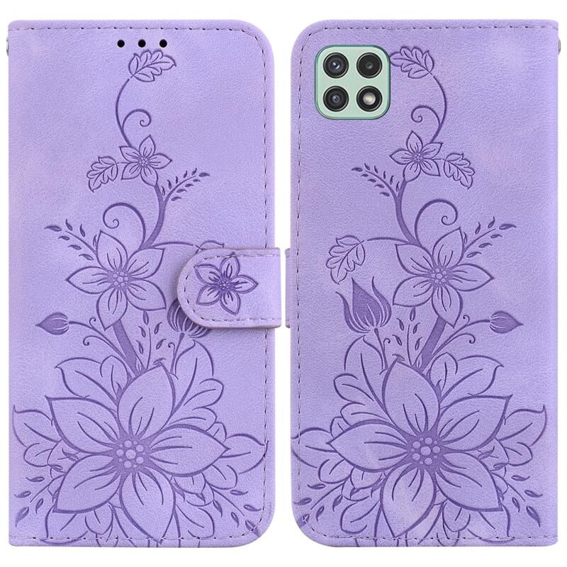 Θήκη τηλεφώνου Samsung Galaxy A22 5G Lily με ανάγλυφο δέρμα (Μωβ)