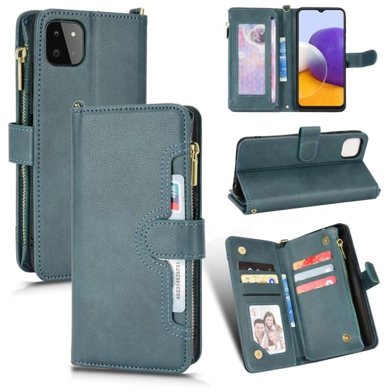 Για Samsung Galaxy A22 5G Litchi υφή φερμουάρ δερμάτινη θήκη τηλεφώνου (πράσινο)