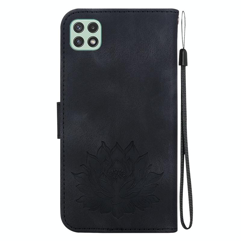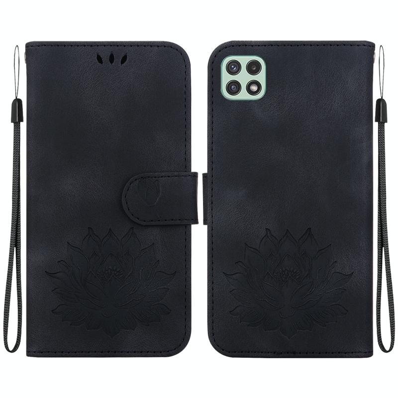 For Samsung Galaxy A22 5G Lotus Embossed Leather Phone Case(Black)