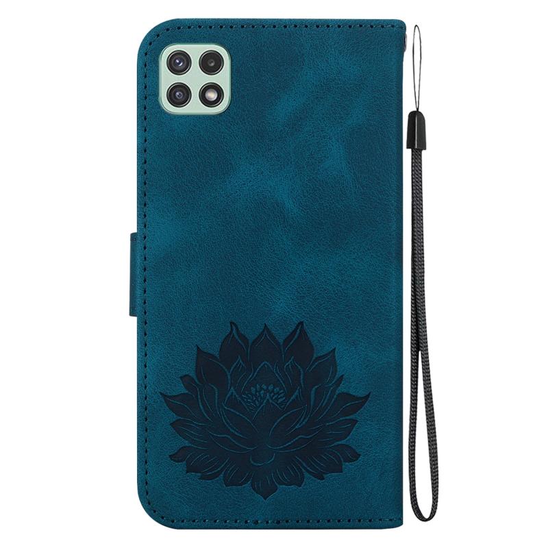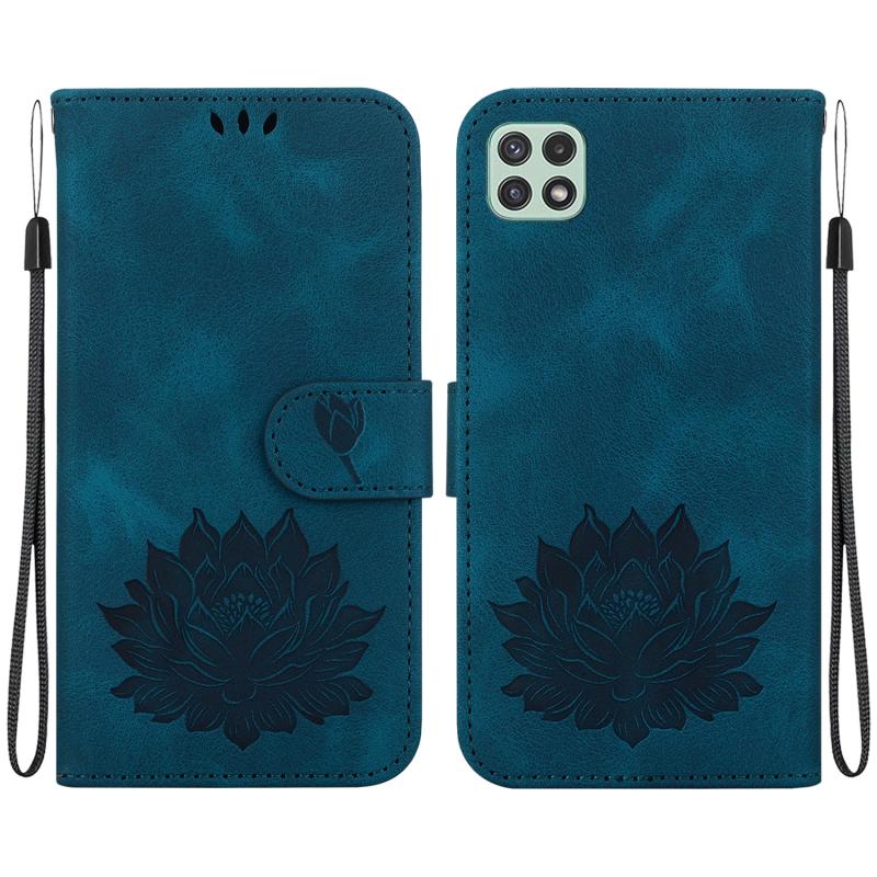 For Samsung Galaxy A22 5G Lotus Embossed Leather Phone Case(Dark Blue)