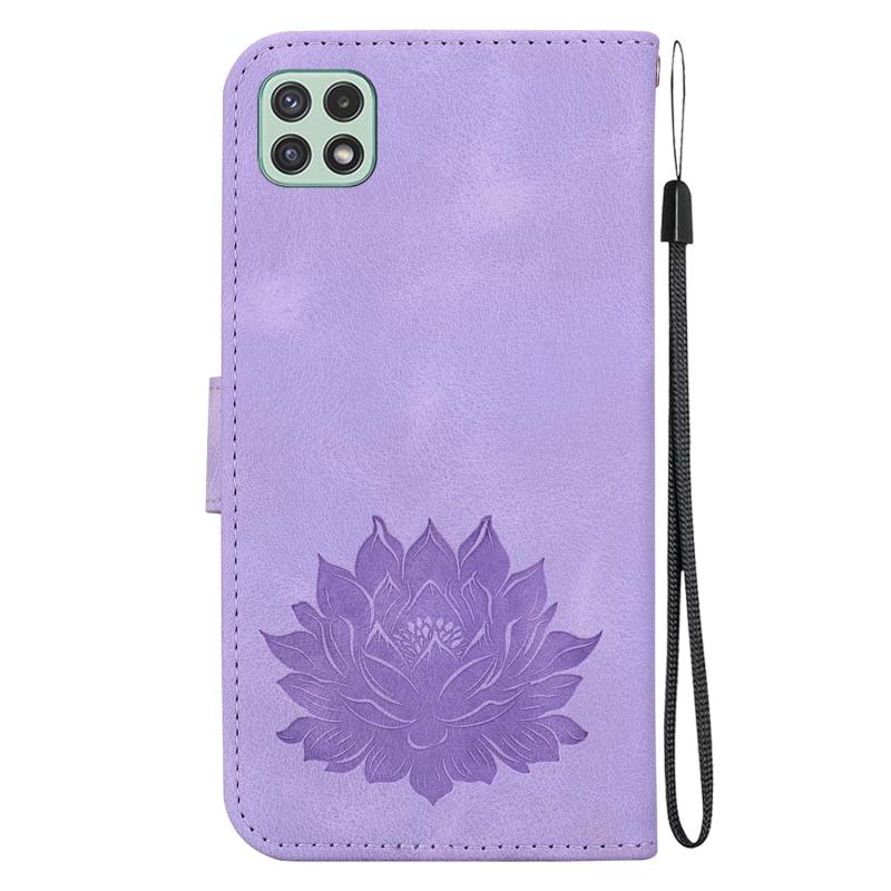 For Samsung Galaxy A22 5G Lotus Embossed Leather Phone Case(Purple)