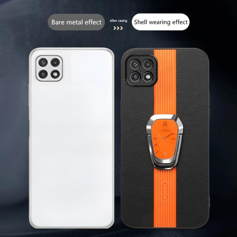 Θήκη κινητού τηλεφώνου Samsung Galaxy A22 5G με μαγνητικό δέρμα Litchi και βάση στήριξης (Πορτοκαλί)
