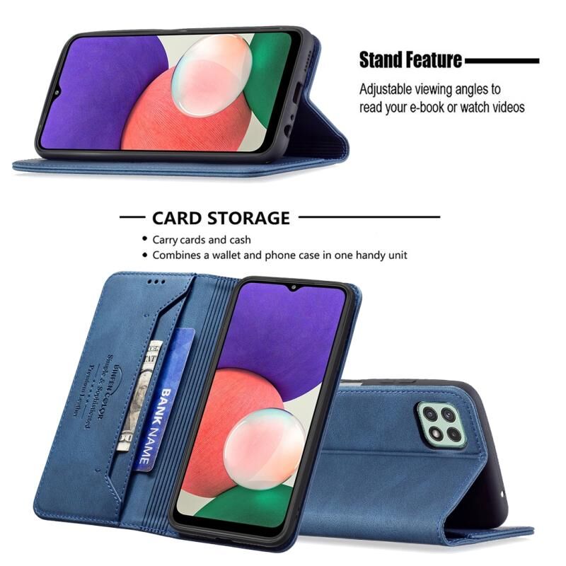 Για Samsung Galaxy A22 5G Μαγνητικό μπλοκάρισμα RFID Anti-Theft Δερμάτινη θήκη με θήκη & υποδοχές για κάρτες & πορτοφόλι (μπλε)