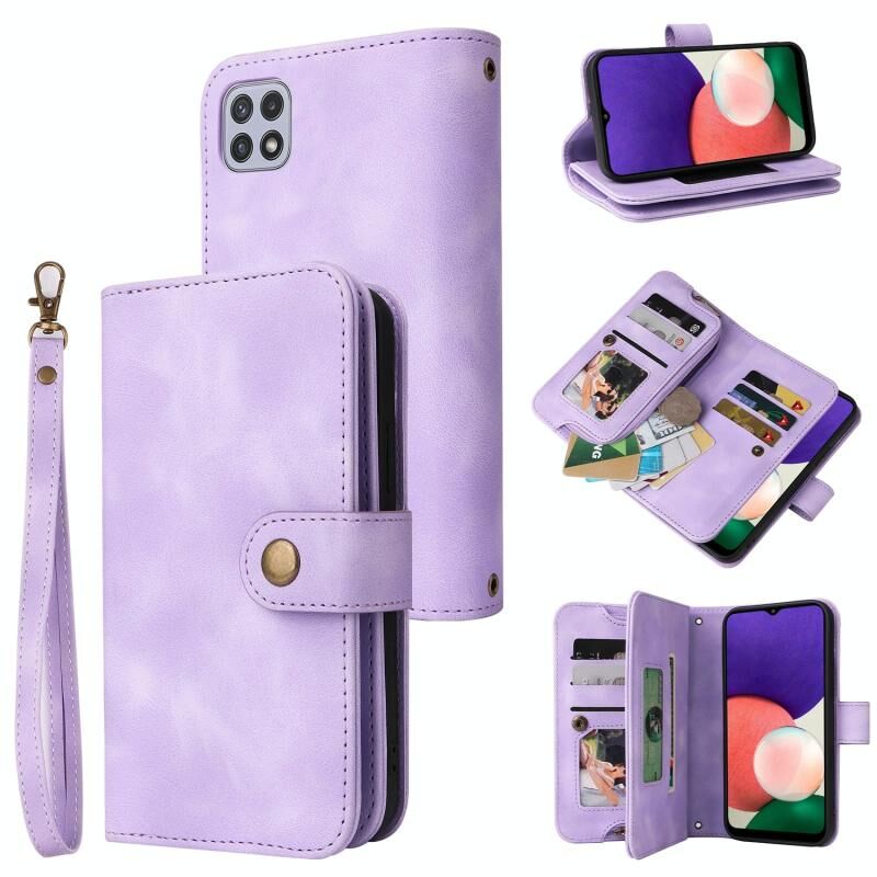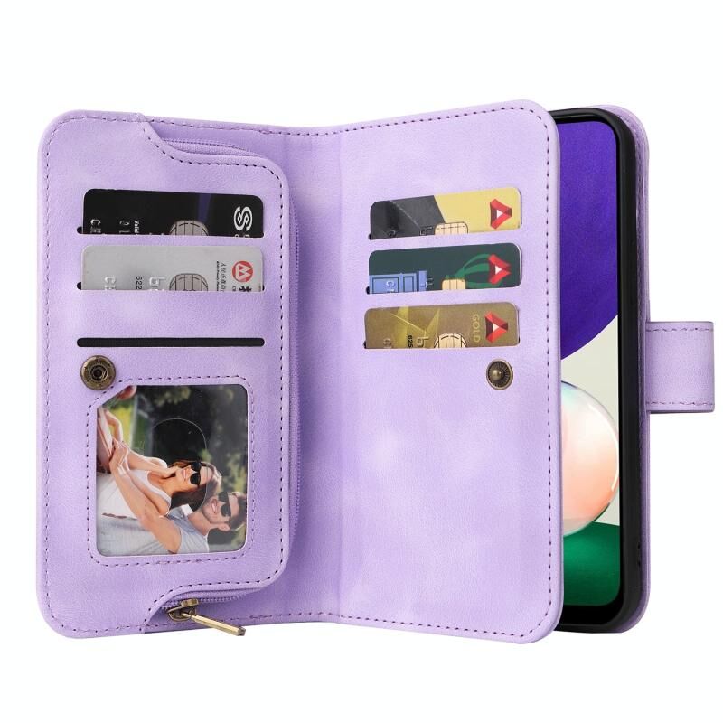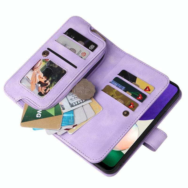 Για Samsung Galaxy A22 5G Πολυλειτουργική κάρτα Slot φερμουάρ πορτοφόλι δερμάτινη θήκη τηλεφώνου (μωβ)