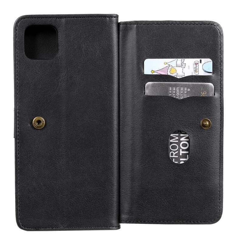 Για Samsung Galaxy A22 5G Πολυλειτουργική μαγνητική χάλκινη πόρπη οριζόντια Flip αμιγούς χρώματος δερμάτινη θήκη με 10 υποδοχές για κάρτες & πορτοφόλι & θήκη & κορνίζα φωτογραφιών (μαύρο)