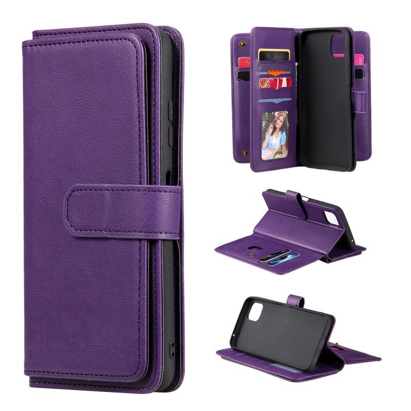 Για Samsung Galaxy A22 5G Πολυλειτουργική μαγνητική χάλκινη πόρπη οριζόντια Flip αμιγούς χρώματος δερμάτινη θήκη με 10 υποδοχές για κάρτες & πορτοφόλι & θήκη & κορνίζα φωτογραφιών (μωβ)