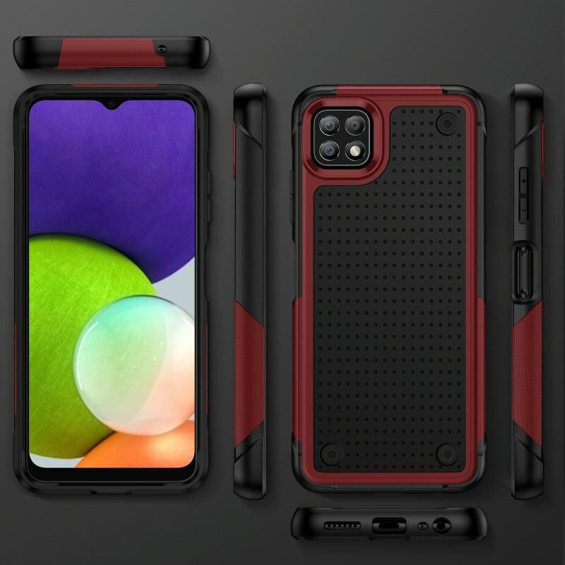 Για Samsung Galaxy A22 5G PC + TPU Shockproof προστατευτική θήκη τηλεφώνου (κόκκινο + μαύρο)