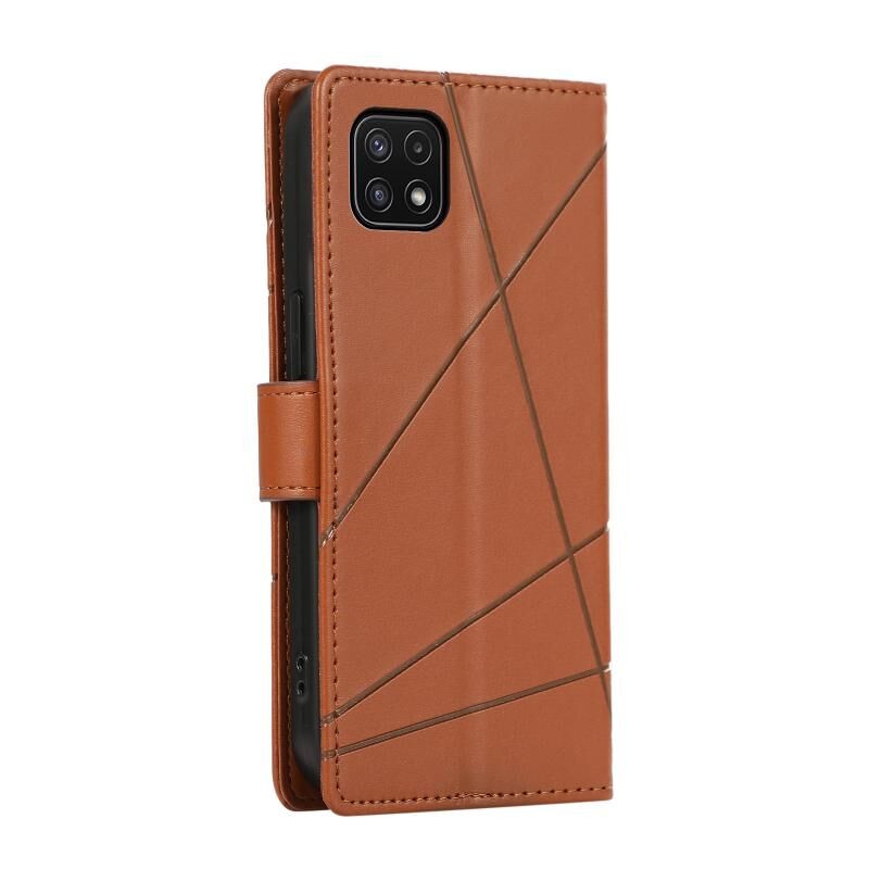 Θήκη τηλεφώνου για Samsung Galaxy A22 5G από γνήσιο δέρμα PU με ανάγλυφη υφή και λεπτή γραμμή (Μπλε)