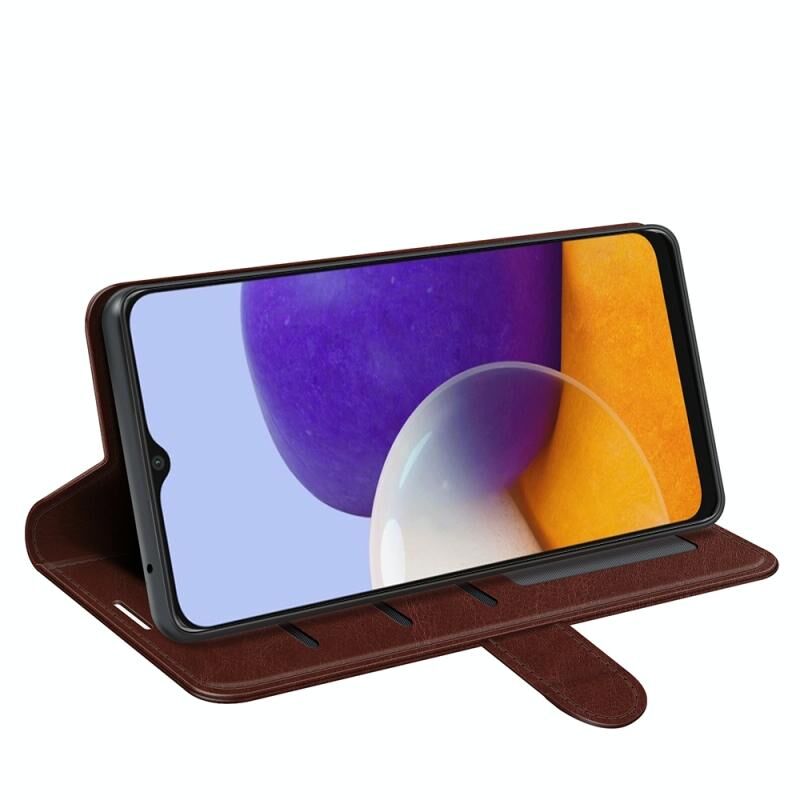 Θήκη προστασίας Samsung Galaxy A22 5G R64 με υφή, οριζόντιο άνοιγμα, βάση στήριξης, θήκες για κάρτες, πορτοφόλι & κορνίζα φωτογραφιών (Μαύρο)