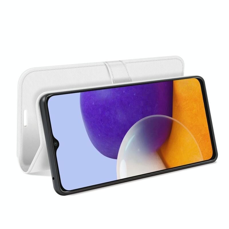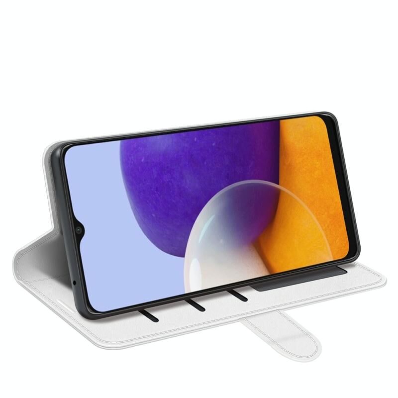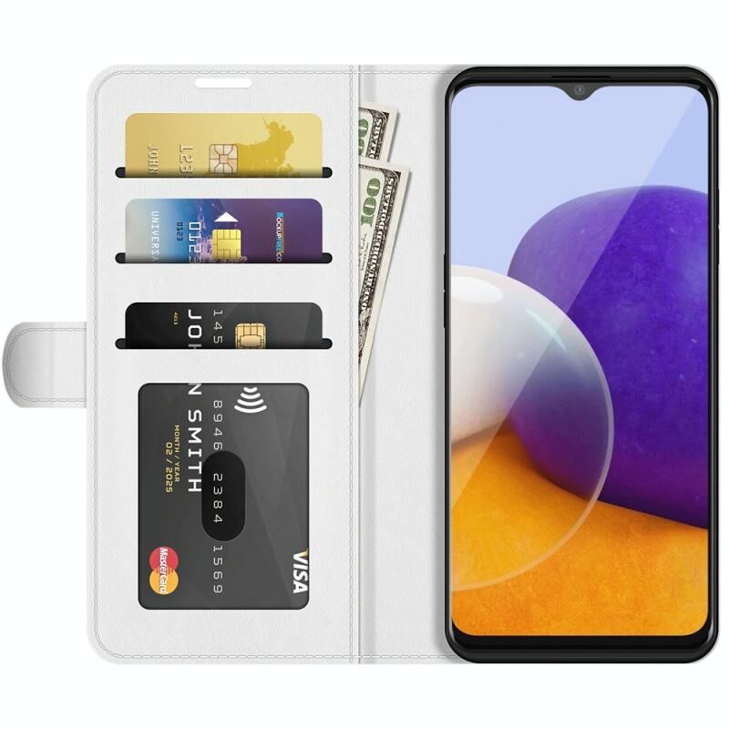 Θήκη προστασίας Samsung Galaxy A22 5G R64 με υφή, οριζόντιο άνοιγμα, βάση στήριξης, θήκες για κάρτες, πορτοφόλι & κορνίζα φωτογραφιών (Μαύρο)