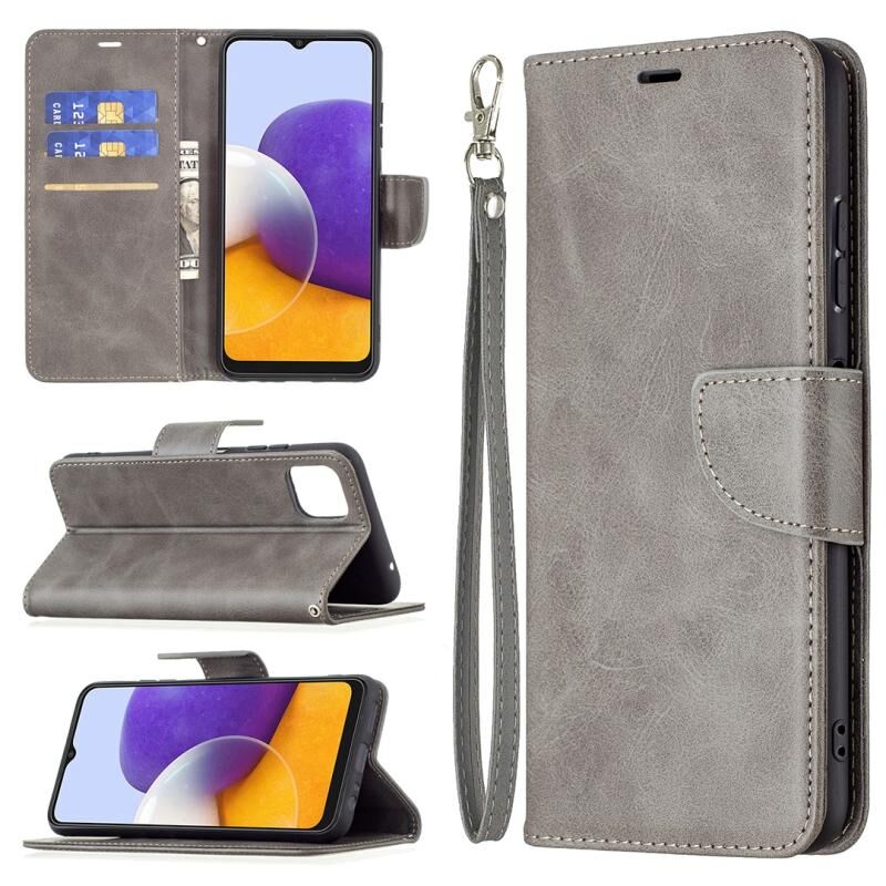 Για Samsung Galaxy A22 5G Retro Lambskin υφή καθαρό χρώμα οριζόντια Flip PU δερμάτινη θήκη με θήκη & υποδοχές για κάρτες & πορτοφόλι & κορδόνι (γκρι)