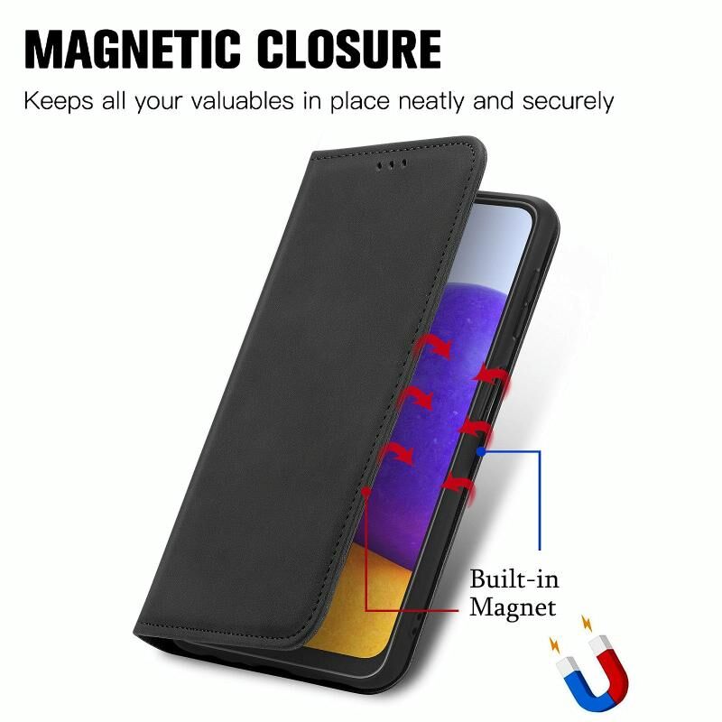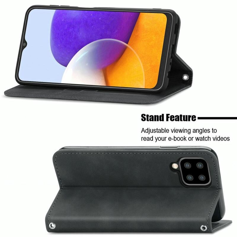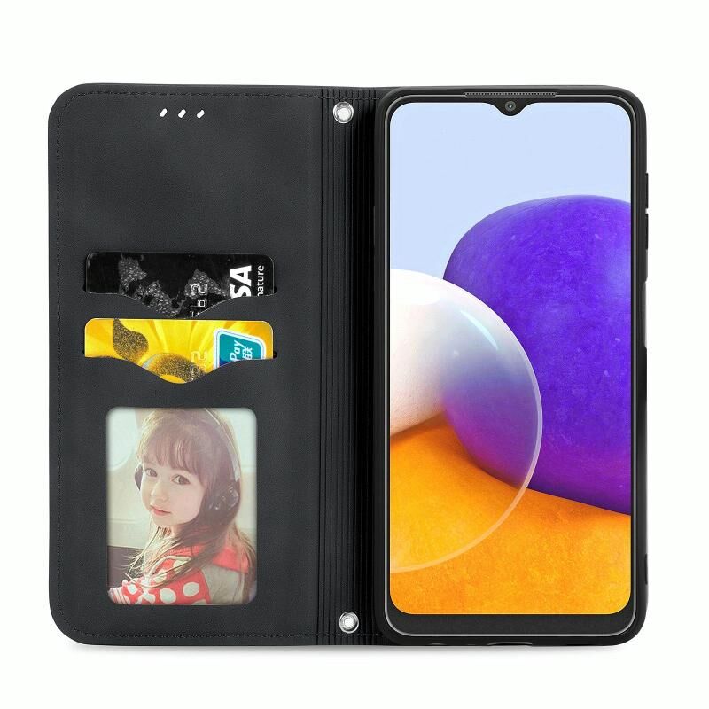 Για Samsung Galaxy A22 5G Retro Skin Feel Business Μαγνητική οριζόντια Flip δερμάτινη θήκη με υποδοχές για κάρτες & πορτοφόλι & κορνίζα φωτογραφιών (Μαύρο)