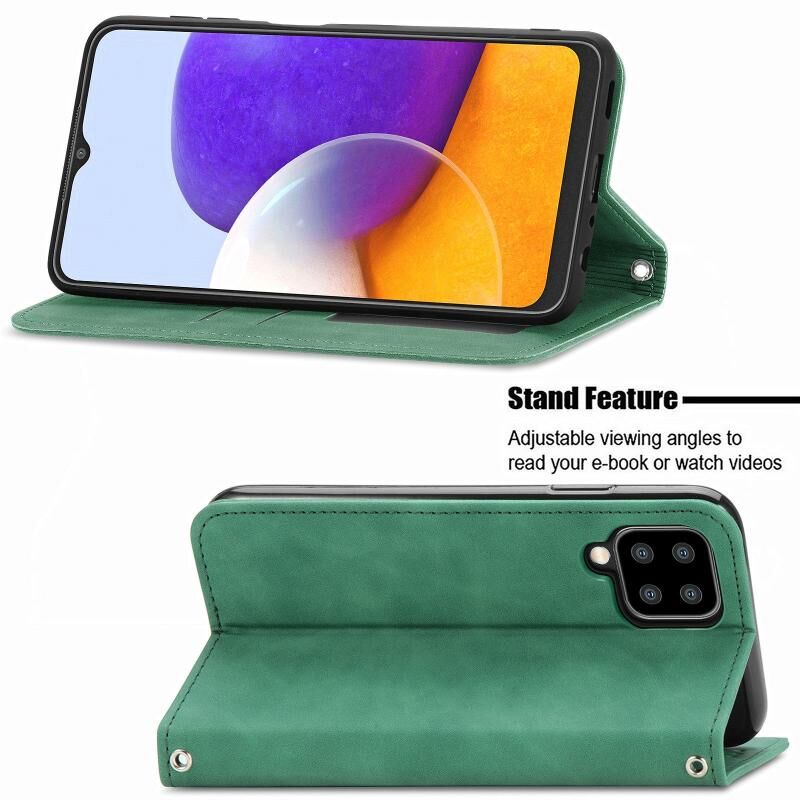 Για Samsung Galaxy A22 5G Retro Skin Feel Business Μαγνητική οριζόντια Flip δερμάτινη θήκη με υποδοχές για κάρτες & πορτοφόλι & κορνίζα φωτογραφιών (πράσινο)