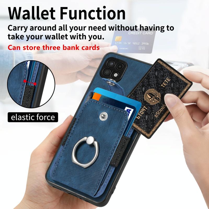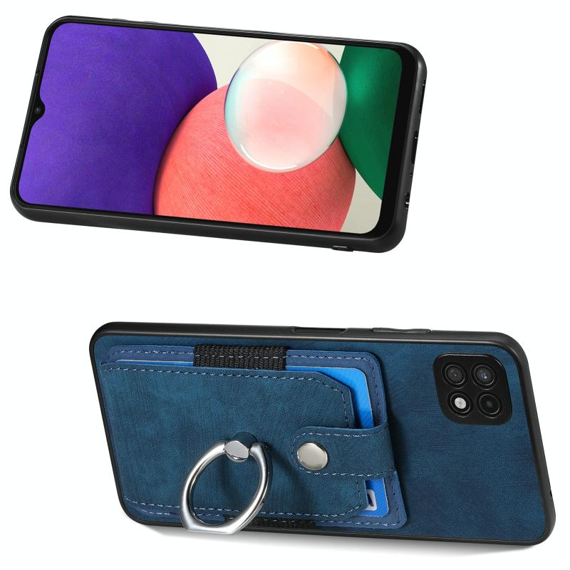 Θήκη κινητού τηλεφώνου Samsung Galaxy A22 5G με κάρτες και δακτύλιο, υφή retro (Καφέ)