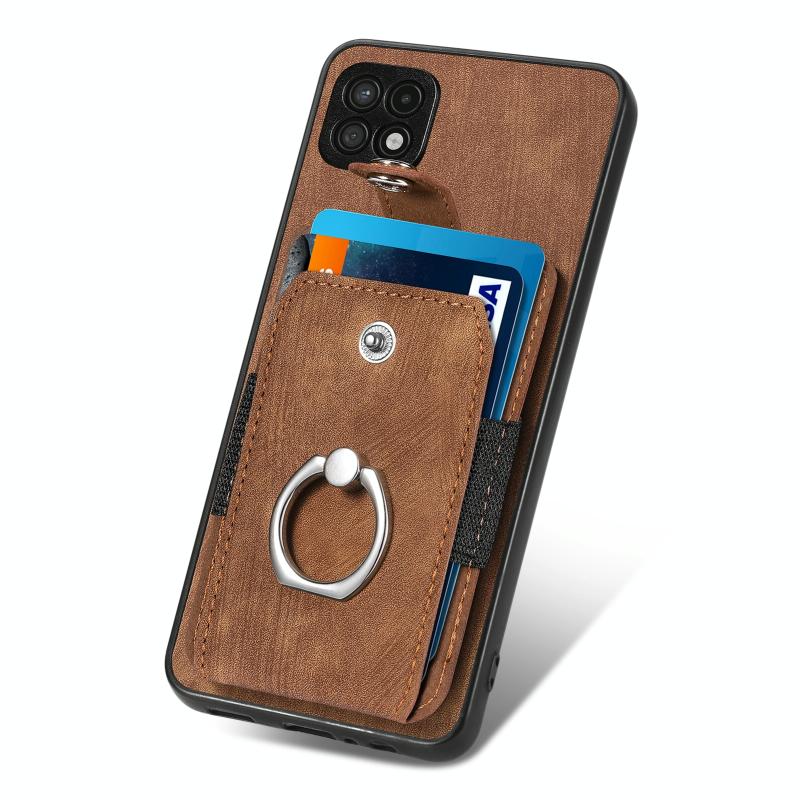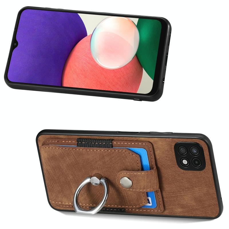 Θήκη κινητού τηλεφώνου Samsung Galaxy A22 5G με κάρτες και δακτύλιο, υφή retro (Καφέ)