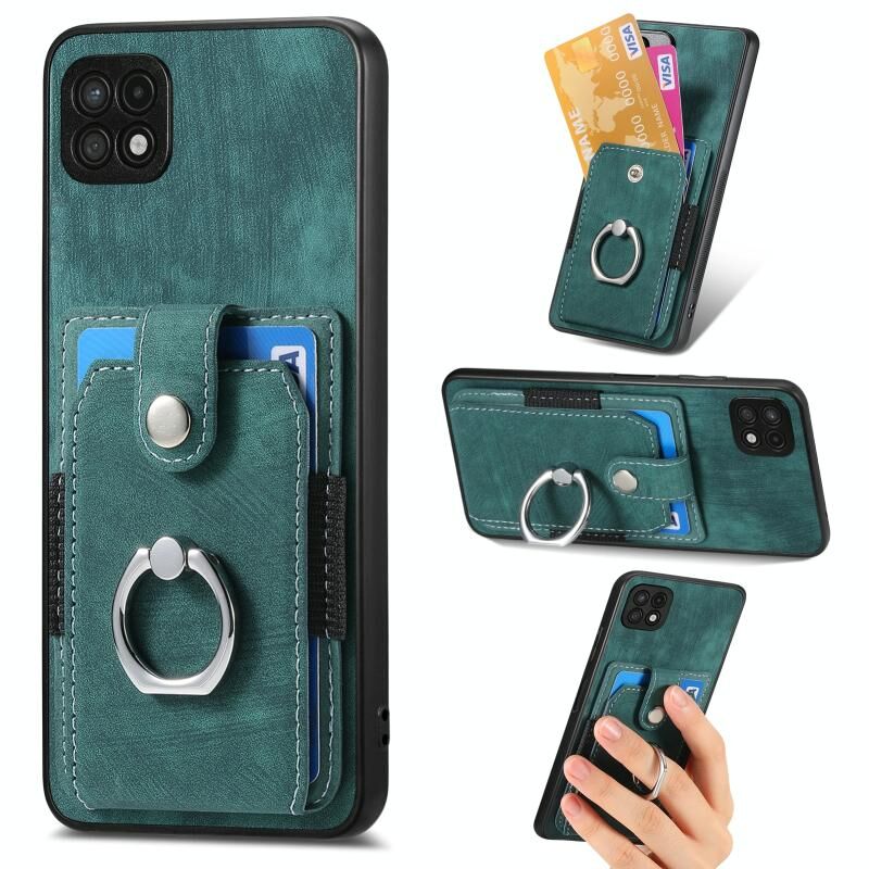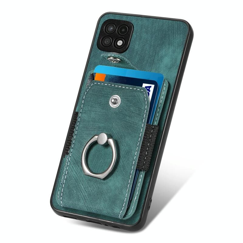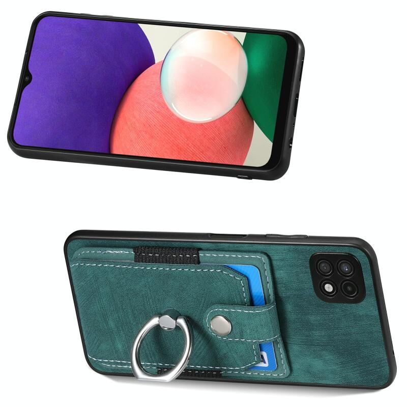 Θήκη κινητού τηλεφώνου Samsung Galaxy A22 5G με κάρτες και δακτύλιο, υφή retro (Καφέ)