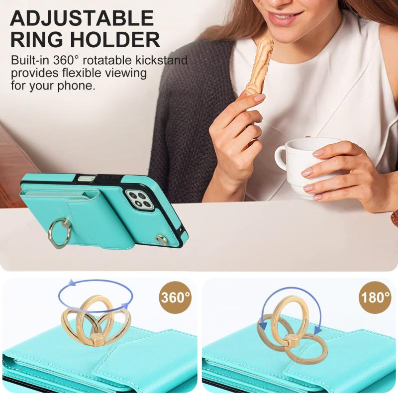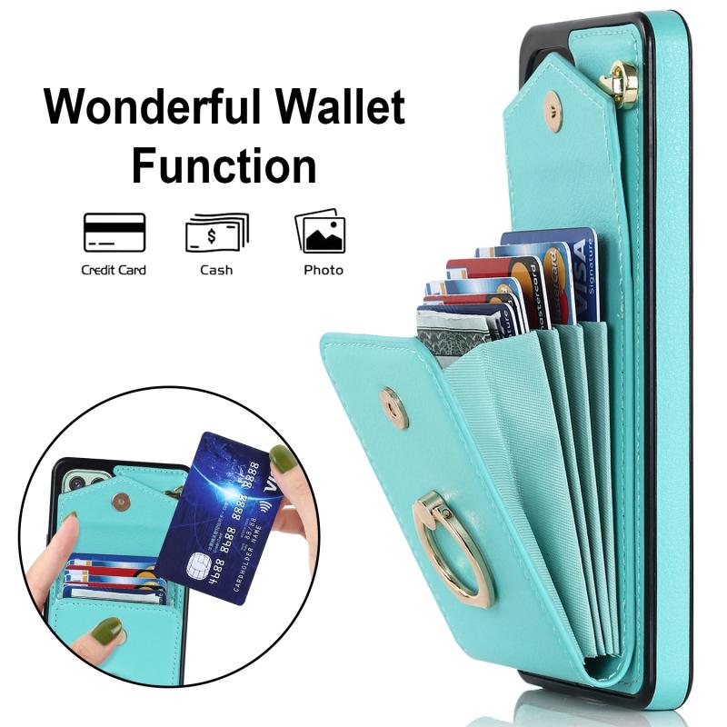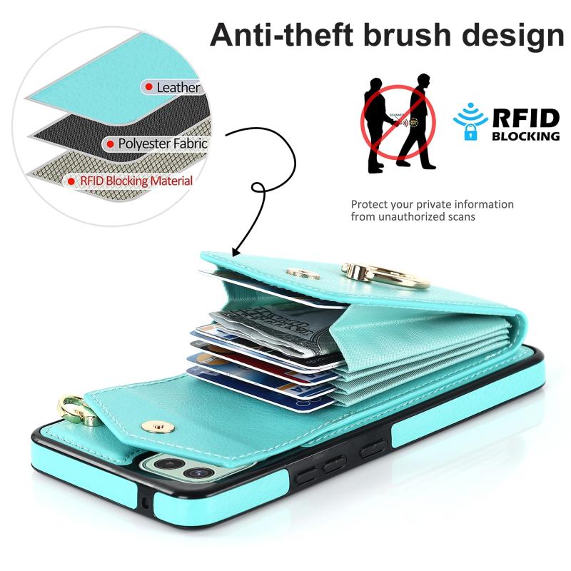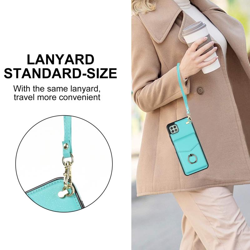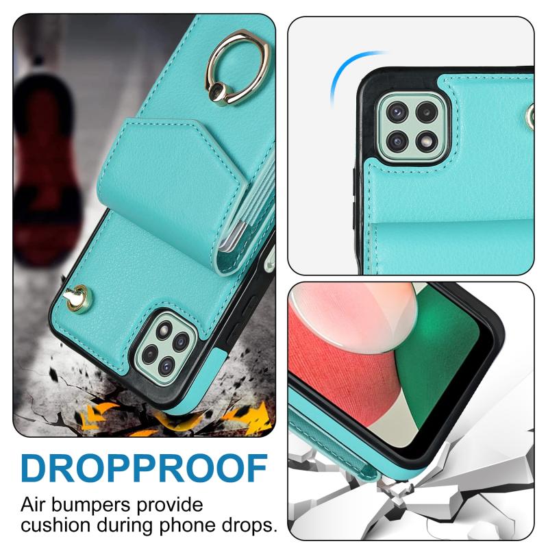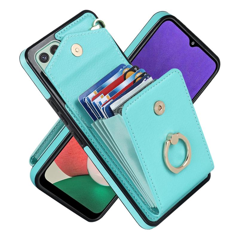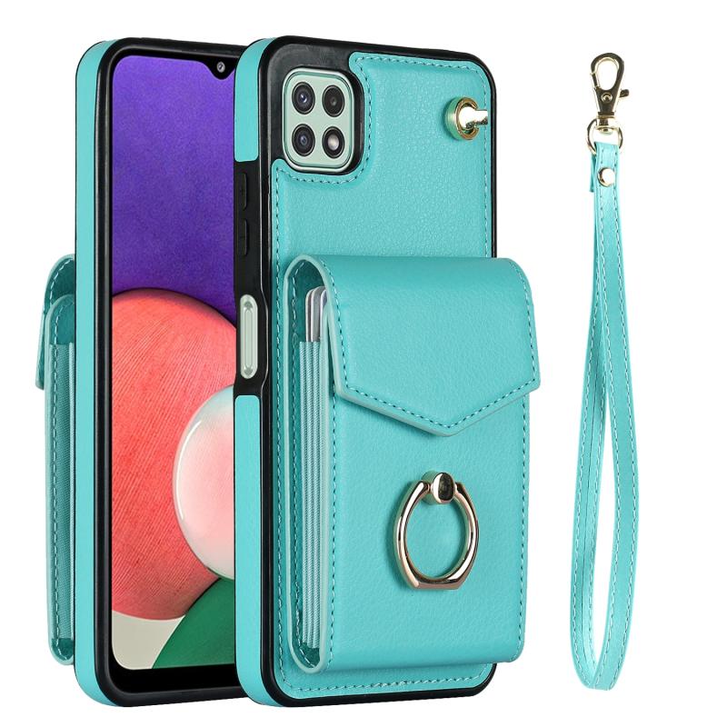 Θήκη κινητού τηλεφώνου με δακτύλιο και θήκη καρτών RFID για Samsung Galaxy A22 5G (Μέντας πράσινο)