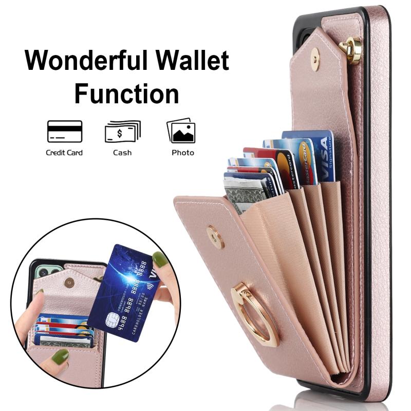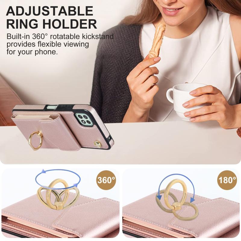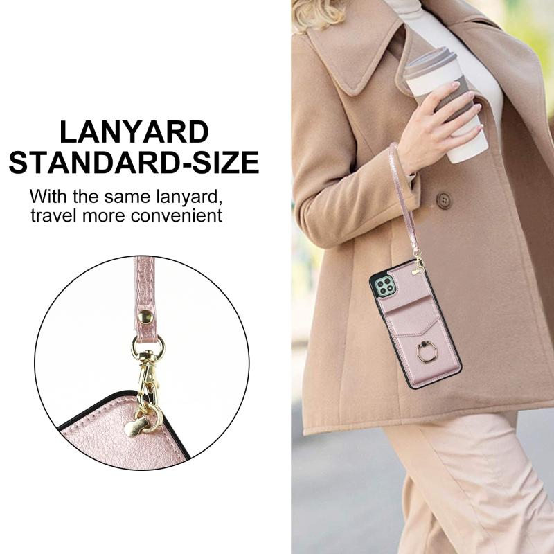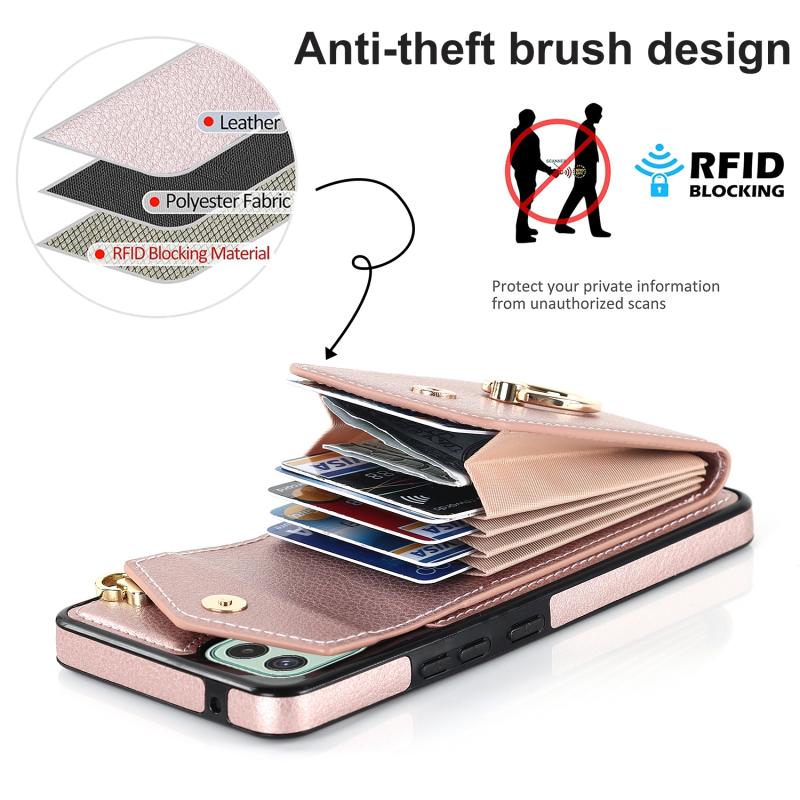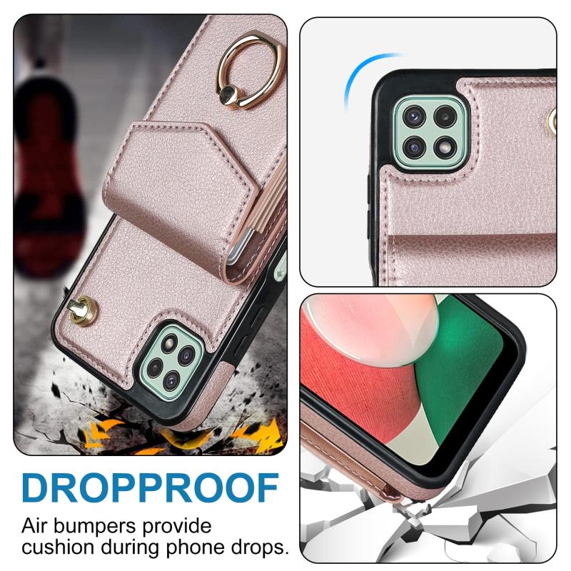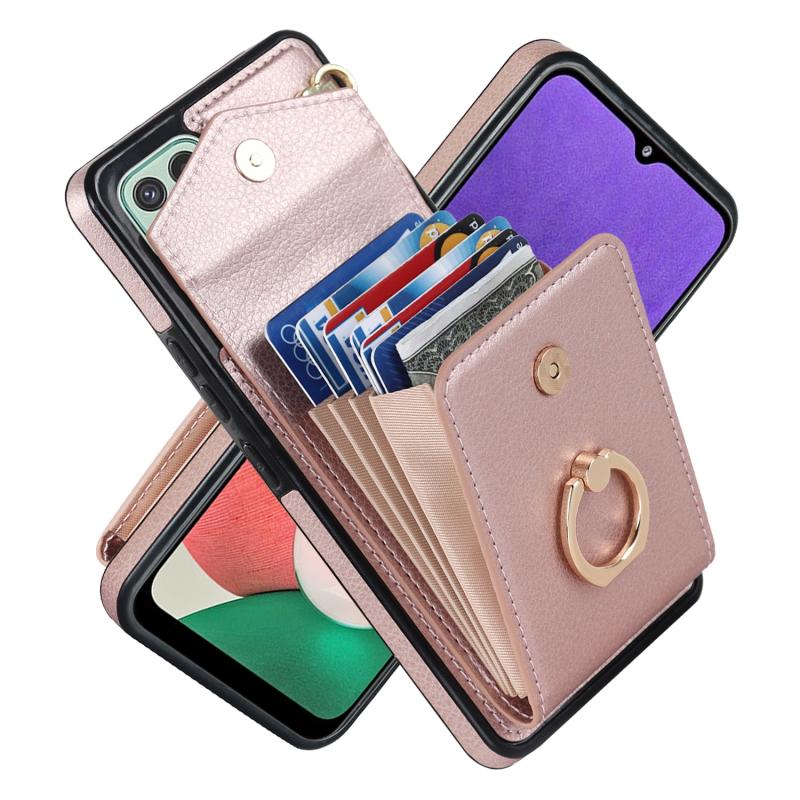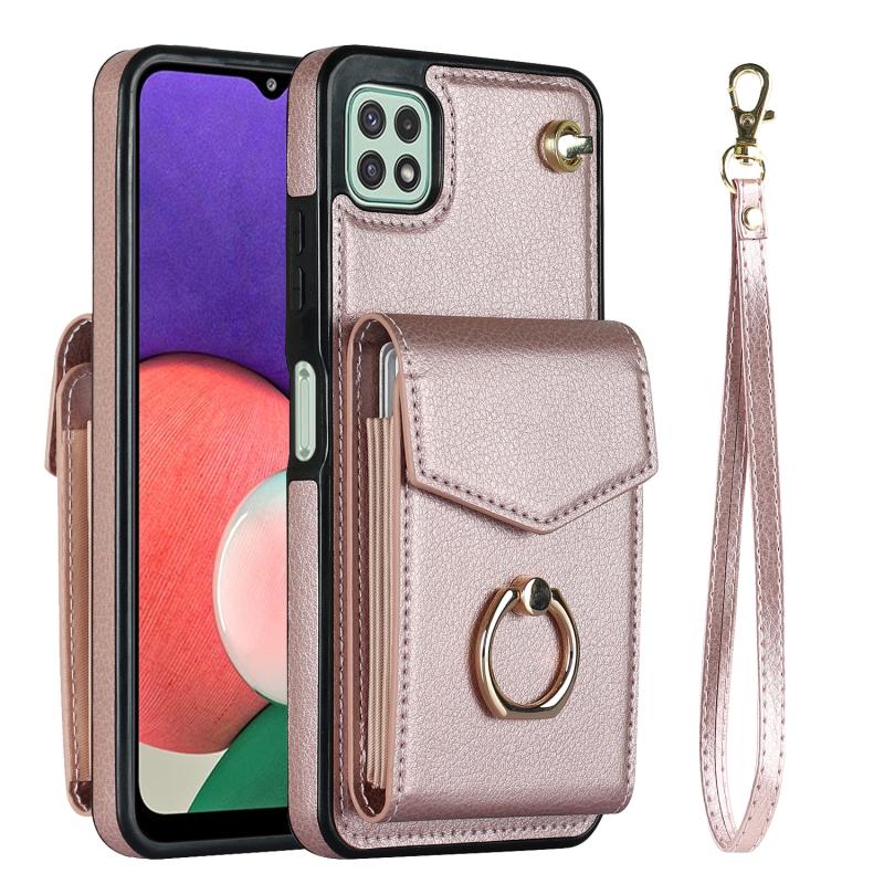 Θήκη κινητού τηλεφώνου με δακτύλιο και θήκη καρτών RFID για Samsung Galaxy A22 5G (Ροζ χρυσός)