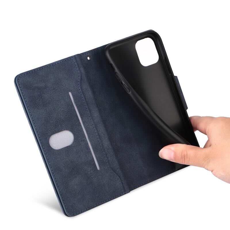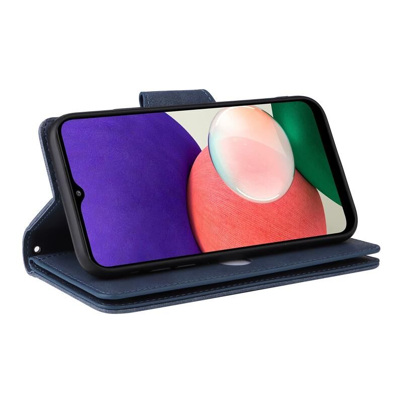 Για Samsung Galaxy A22 5G Rivet πόρπη 9 κάρτες τρεις φορές δερμάτινη θήκη τηλεφώνου (Μπλε)
