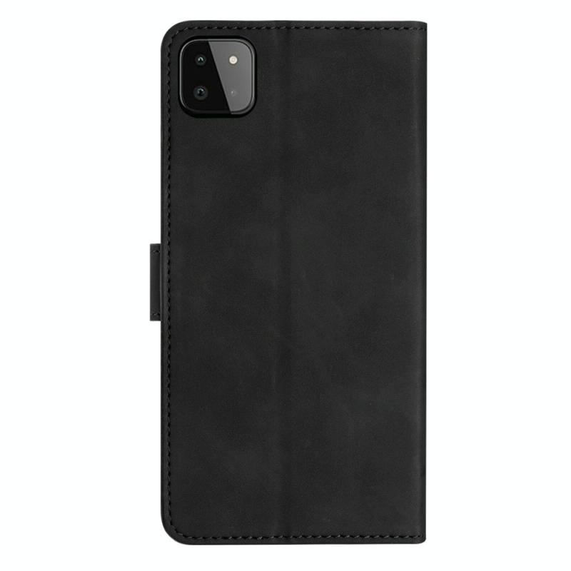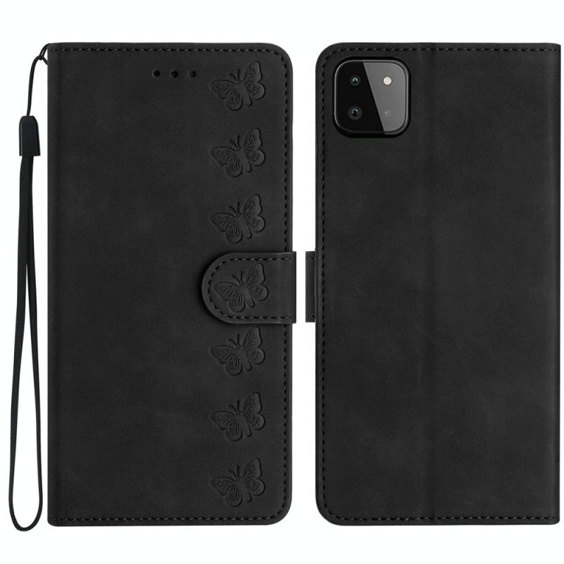 Θήκη τηλεφώνου Samsung Galaxy A22 5G Seven Butterflies με ανάγλυφο δέρμα (Μαύρο)