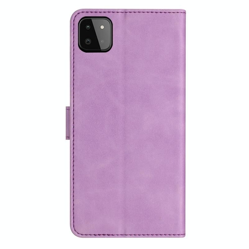 Θήκη τηλεφώνου Samsung Galaxy A22 5G Seven Butterflies με ανάγλυφο δέρμα (Μωβ)