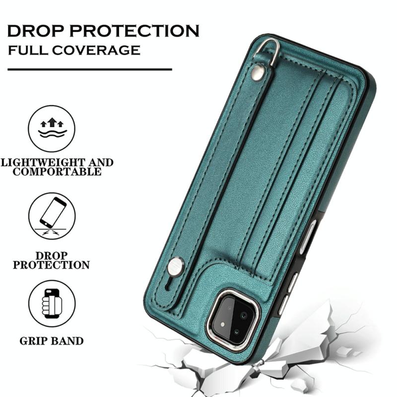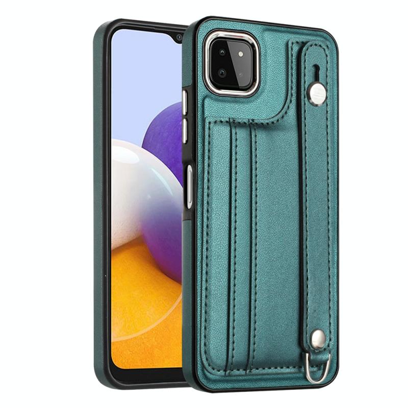 Θήκη κινητού Samsung Galaxy A22 5G από δέρμα, ανθεκτική στις κρούσεις, με λουρί καρπού (πράσινο)