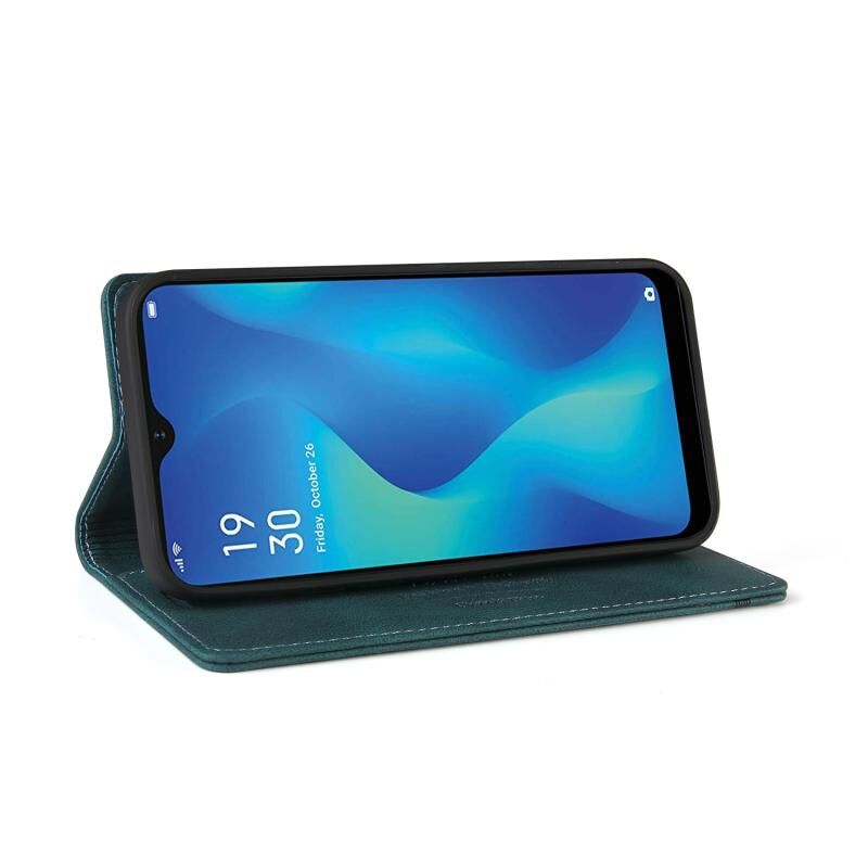 Για το Samsung Galaxy A22 5G Skin Feel Anti-theft Brush Οριζόντια Flip δερμάτινη θήκη με θήκη & υποδοχές για κάρτες & πορτοφόλι (μπλε)
