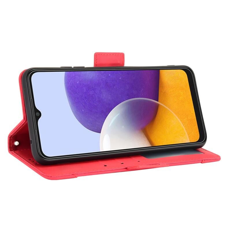 Για Samsung Galaxy A22 5G δέρμα αίσθηση μοσχάρι μοτίβο οριζόντια Flip δερμάτινη θήκη με υποδοχή & υποδοχές για κάρτες & πλαίσιο φωτογραφιών (κόκκινο)
