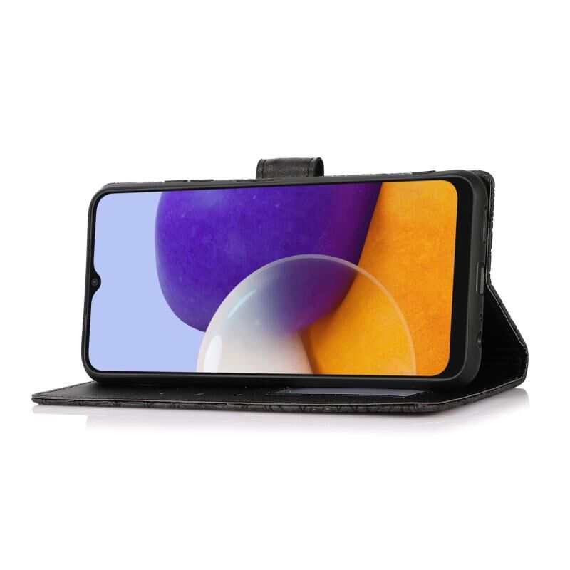 Για Samsung Galaxy A22 5G δέρμα αίσθηση ανάγλυφο ηλιοτρόπιο οριζόντια Flip δερμάτινη θήκη με θήκη & υποδοχές για κάρτες & πορτοφόλι & κορδόνι (Μαύρο)