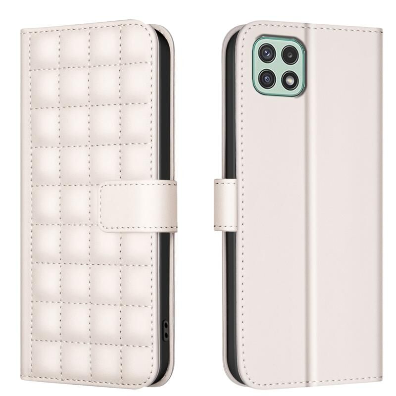 For Samsung Galaxy A22 5G Square Texture Leather Phone Case(Beige)