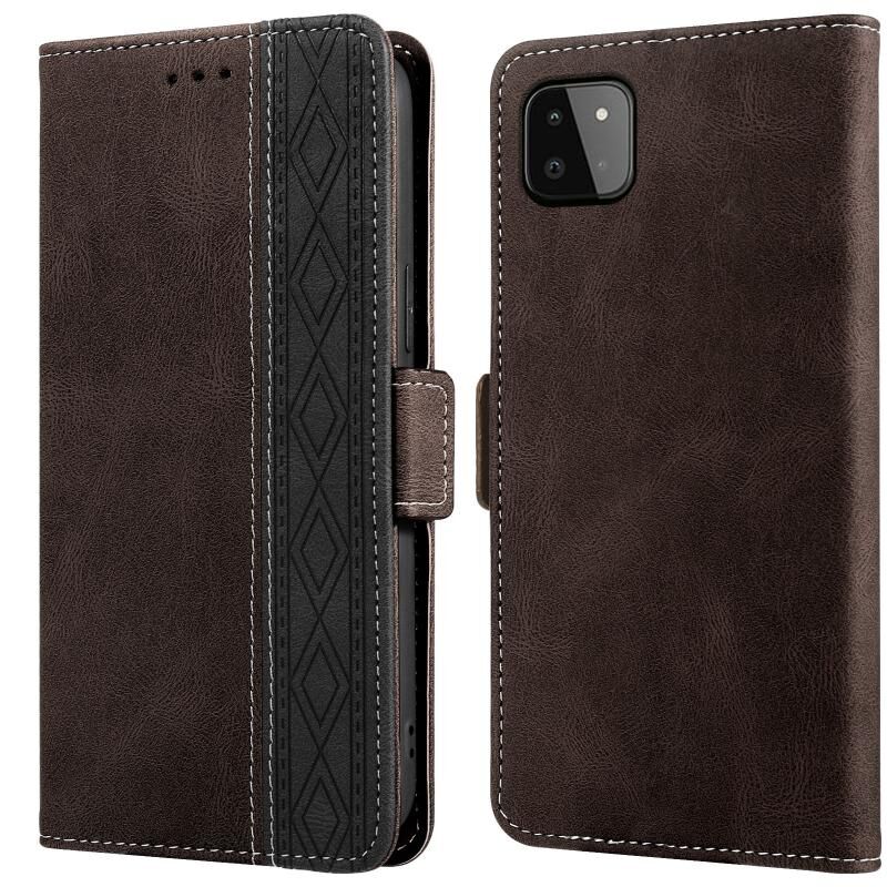 Για Samsung Galaxy A22 5G ραφή Side-Magnetic RFID δερμάτινη θήκη τηλεφώνου (Καφέ)
