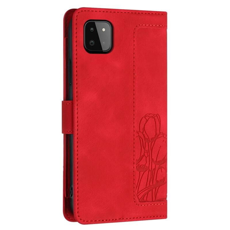 Θήκη τηλεφώνου δερμάτινη ανάγλυφη με σχέδιο τουλίπας και λουρί για Samsung Galaxy A22 5G (Ροζ)