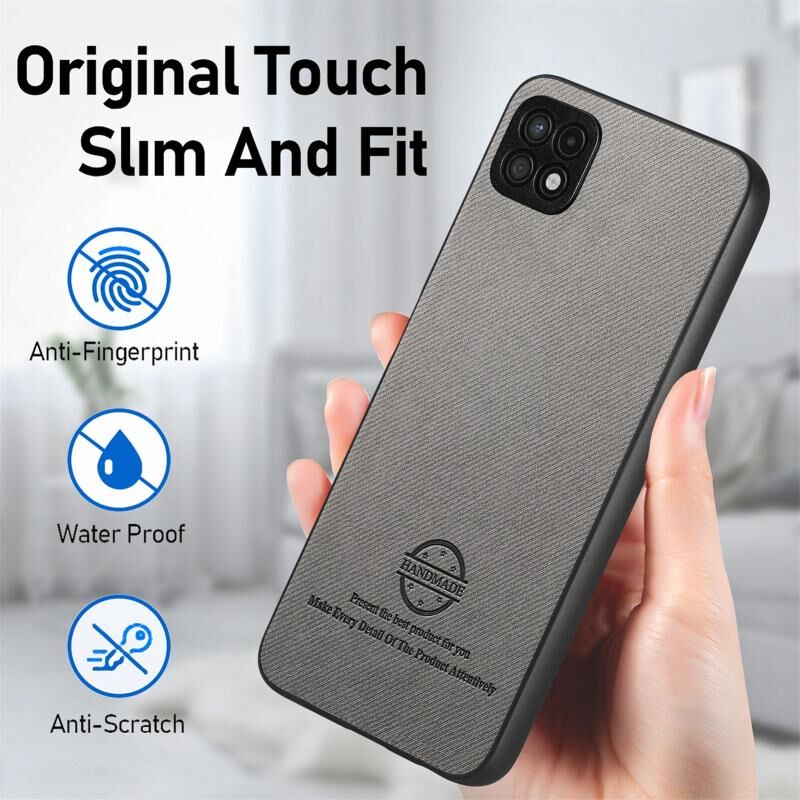 Για Samsung Galaxy A22 5G Twill Fabric δέρμα δέρμα πίσω θήκη τηλεφώνου (Γκρι)