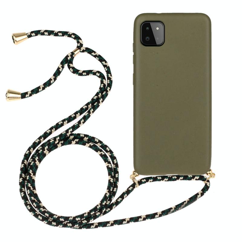 Θήκη κινητού τηλεφώνου για Samsung Galaxy A22 5G από άχυρο σίτου + TPU με κορδόνι (Πράσινο)