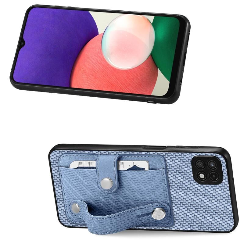 Για Samsung Galaxy A22 5G Wristband Kickstand Wallet Πίσω τηλέφωνο υπόθεση με εργαλείο μαχαίρι (μπλε)