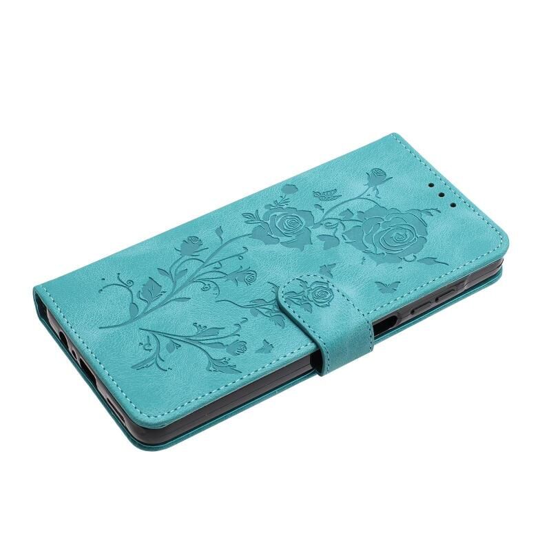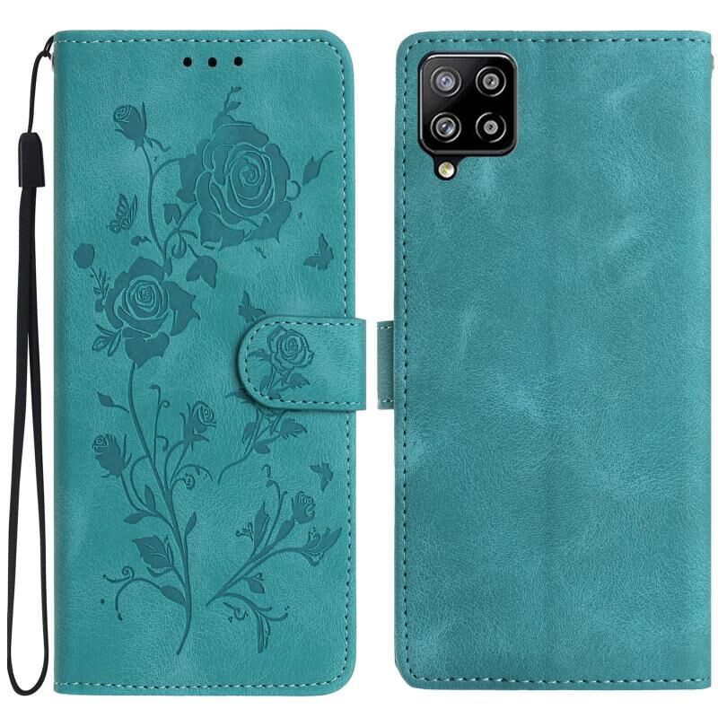 For Samsung Galaxy A22 Rose Flower Embossing Pattern Leather Phone Case(Green)