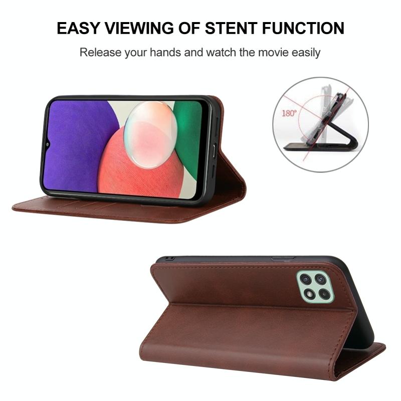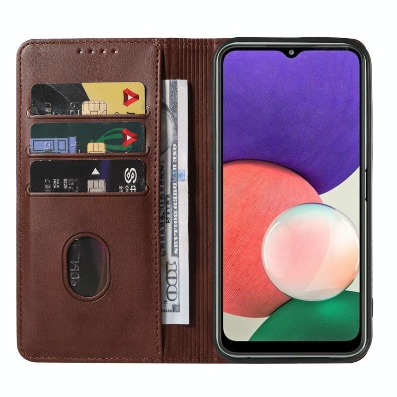 Θήκη τηλεφώνου Samsung Galaxy A22e από δέρμα με μαγνητικό κλείσιμο (Καφέ)