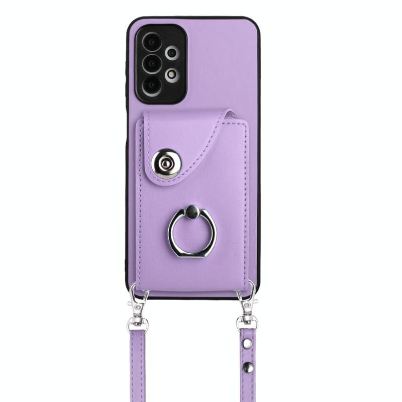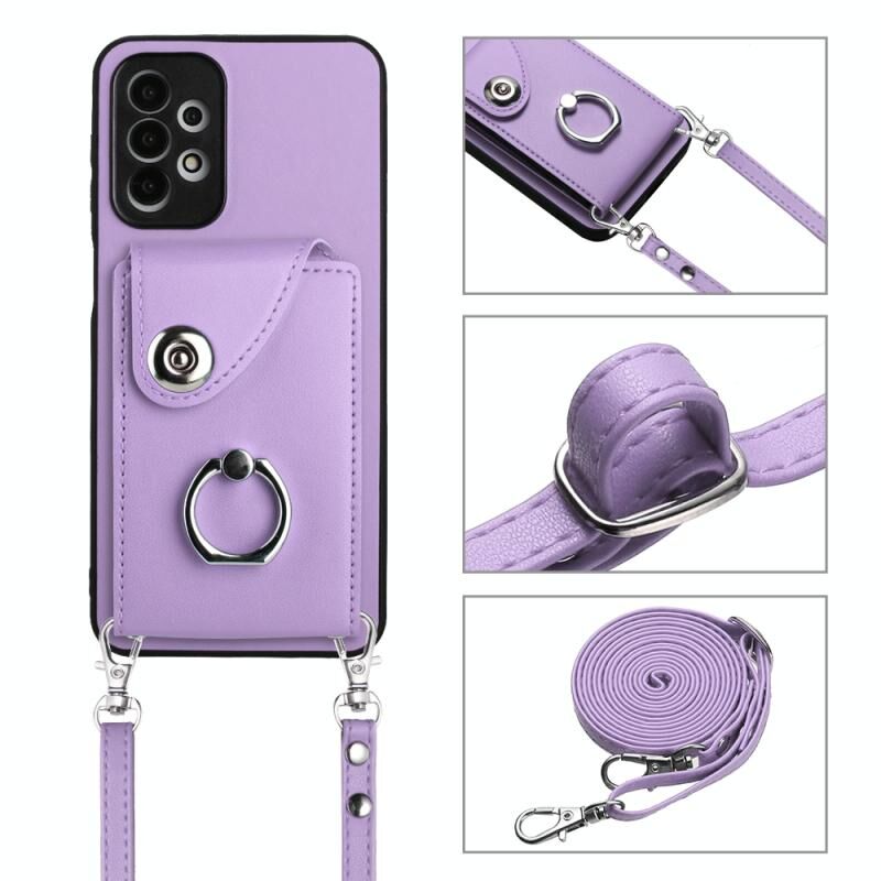 Για Samsung Galaxy A23 165.4mm Οργανο κάρτα τσάντα δαχτυλίδι κάτοχος υπόθεση τηλεφώνου με μακρύ κορδόνι (μωβ)
