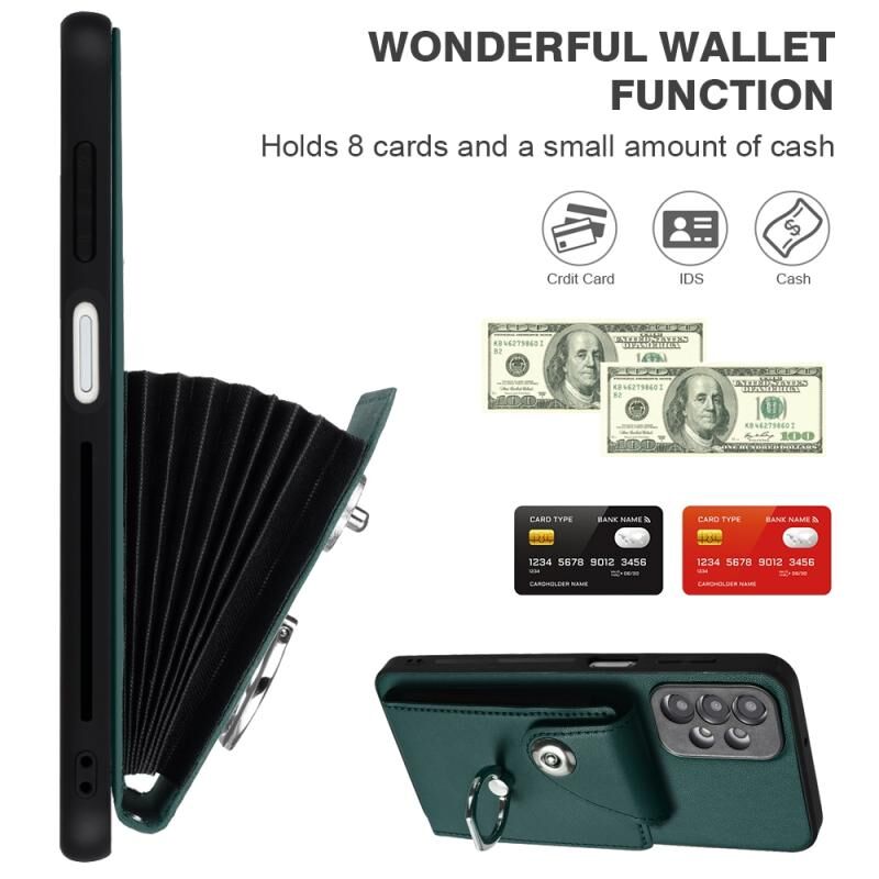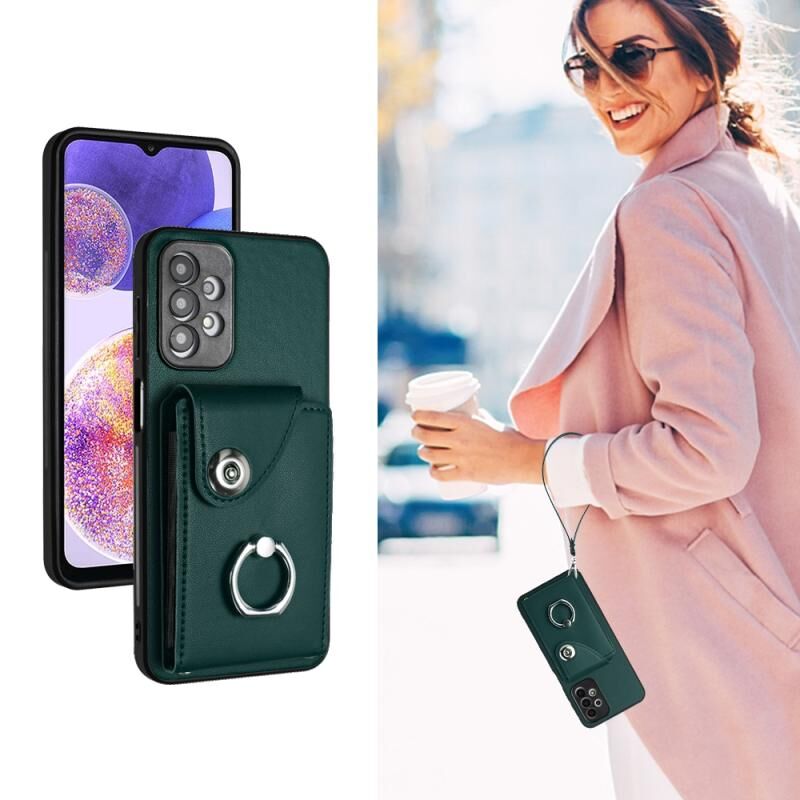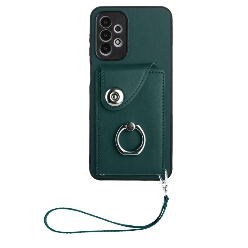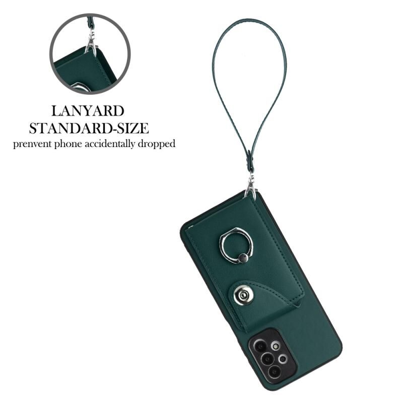 Για Samsung Galaxy A23 165.4mm Οργανο κάρτα τσάντα δαχτυλίδι κάτοχος PU υπόθεση τηλεφώνου με κορδόνι (πράσινο)
