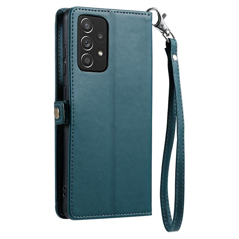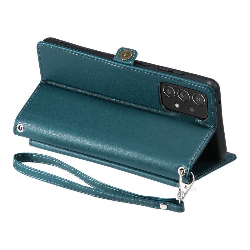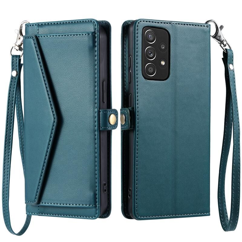 Θήκη τηλεφώνου Samsung Galaxy A23 4G / 5G / F23 5G με πορτοφόλι, πολλαπλές υποδοχές καρτών, δερμάτινη με λουρί (πράσινο)