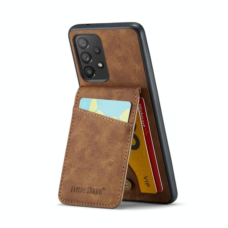Για Samsung Galaxy A23 4G / 5G Fierre Shann Crazy Horse Κάτοχος κάρτας κάτοχος πίσω κάλυμμα PU υπόθεση τηλεφώνου (καφέ) (FIERRE SHANN)