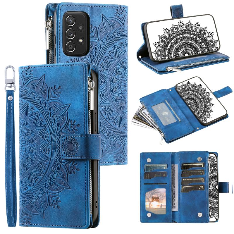 For Samsung Galaxy A23 4G / 5G Multi-Card Totem Zipper Leather Phone Case(Blue)