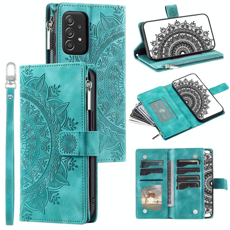 For Samsung Galaxy A23 4G / 5G Multi-Card Totem Zipper Leather Phone Case(Green)