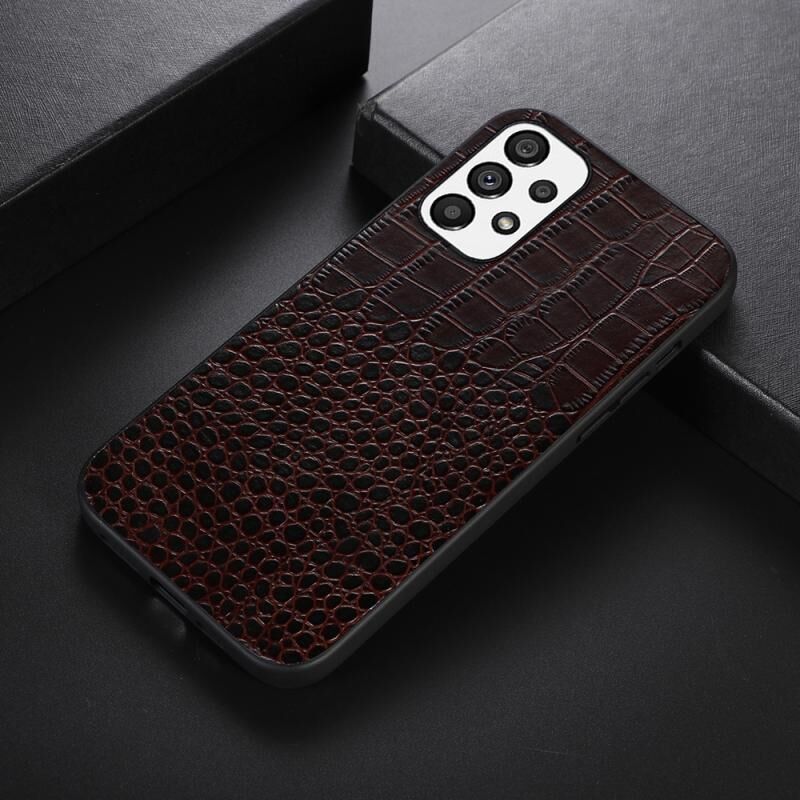Θήκη για Samsung Galaxy A23 4G από γνήσιο δέρμα αγελάδας με επικάλυψη κροκόδειλου (Καφέ)